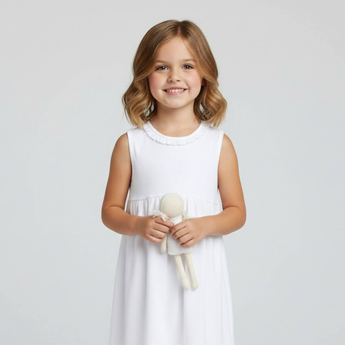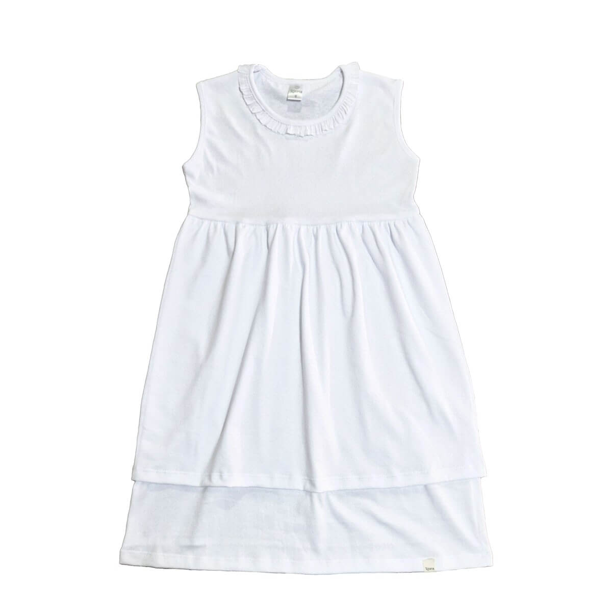 Vestido liso de jersey con doble falda y voladito en el cuello. Color: Blanco
