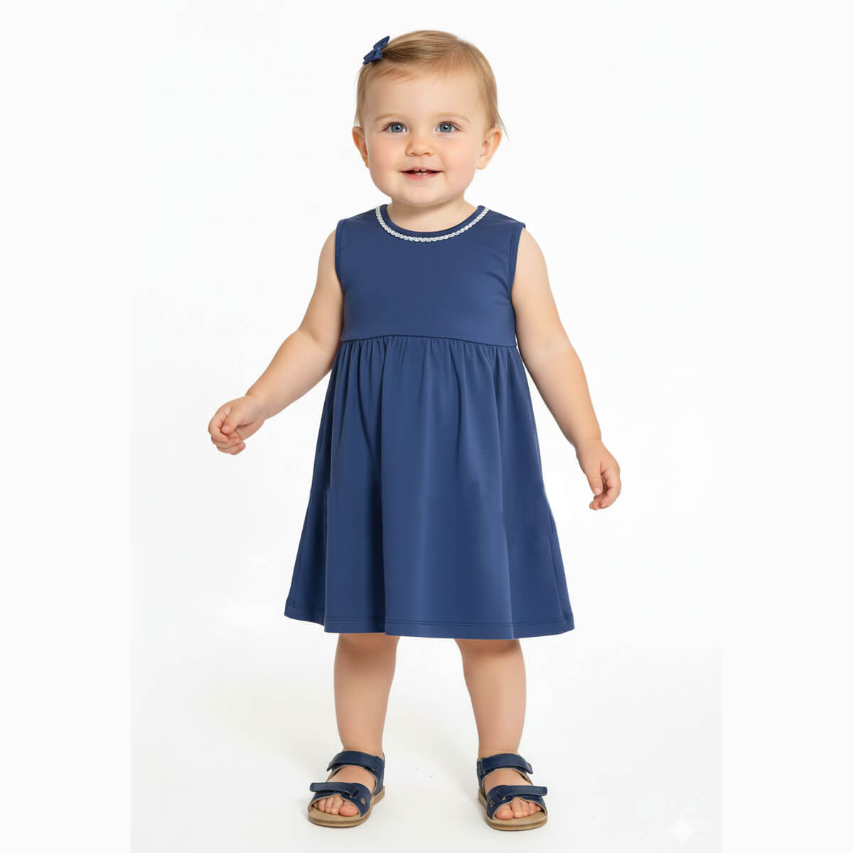 Vestido liso de jersey con doble falda y puntilla en el cuello. Color: Azul Marino